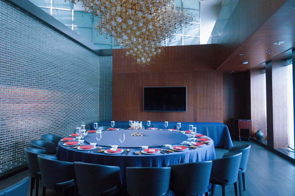 金茂大厦裙楼金茂时尚生活中心6楼6楼都是它家的餐厅,共有13间包房,一个露台,大堂位置(上图)设在一侧走道上。