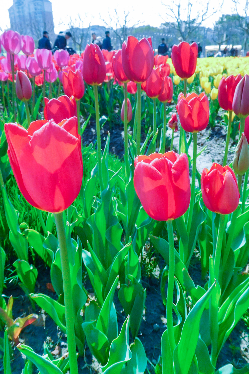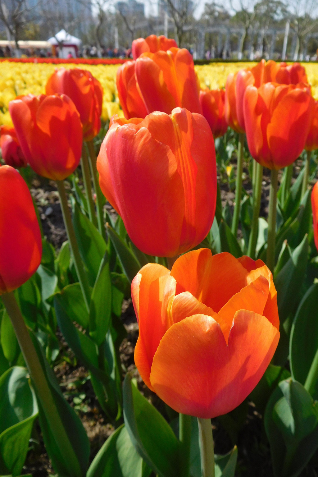 从大宁绿地的北门进入,映入眼帘的就是这次展出的最美的郁金香。