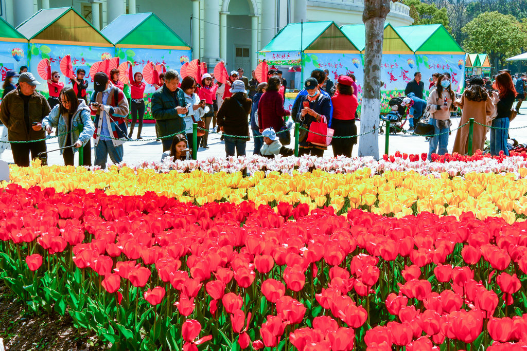 每年的郁金香花展期间,来自各方的郁金香爱好者以及游客蜂拥而至,一时间,公园内人头攒动,熙熙攘攘。