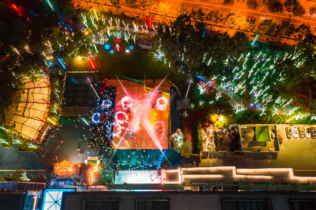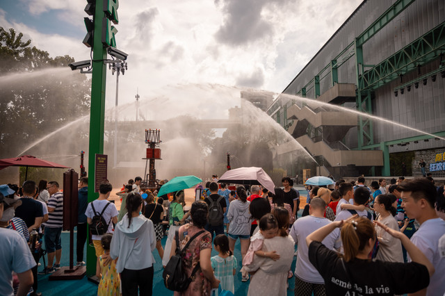 一楼室外演艺公园从早到晚的嗨, 水枪大战,还有DJ点爆气氛。