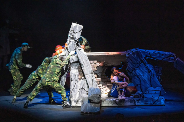 看了下时间表,刚好是5d大地震的表演时间,直接带着小姐姐奔向一楼2号剧院,大地震还原了当年汶川大地震场景,比较有创意的是现场招募群演共同上台表演