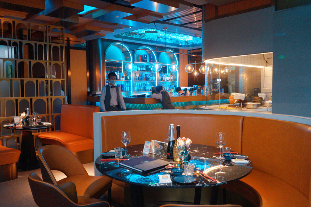中西合璧的设计,恰到好处的低调奢华,雅致而风情,华灯初上,斑斓的光影与这装修风格相辅相成,让人产生了一种错觉,我到底是在酒吧里享受美食的诱惑?还是在餐厅里释放酒精的欢愉呢?老上海的精致格调已让人心醉。