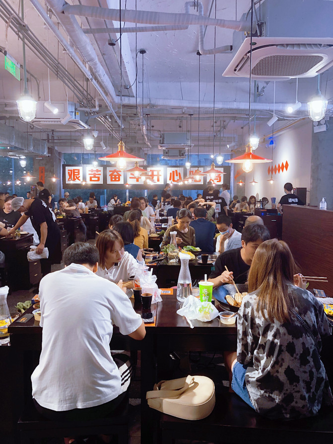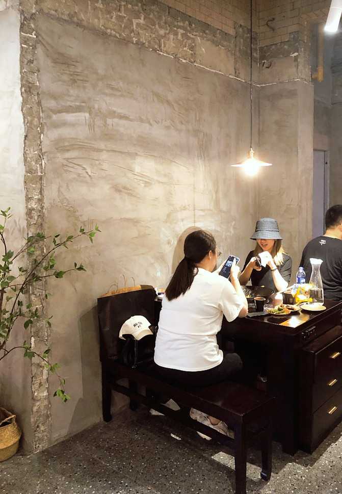 *环境*比较粗犷的工业风环境风格,原始的建筑墙体被暴露出来,水泥天然的斑驳,有着特别的肌理质感,即使满是水泥墙,充满钢筋混凝土的破败感,也不显单调,最自然,最本真的水泥初始状态,使得整个就餐的环境营造出格外放松、质朴的氛围。基本都是方桌,方凳。