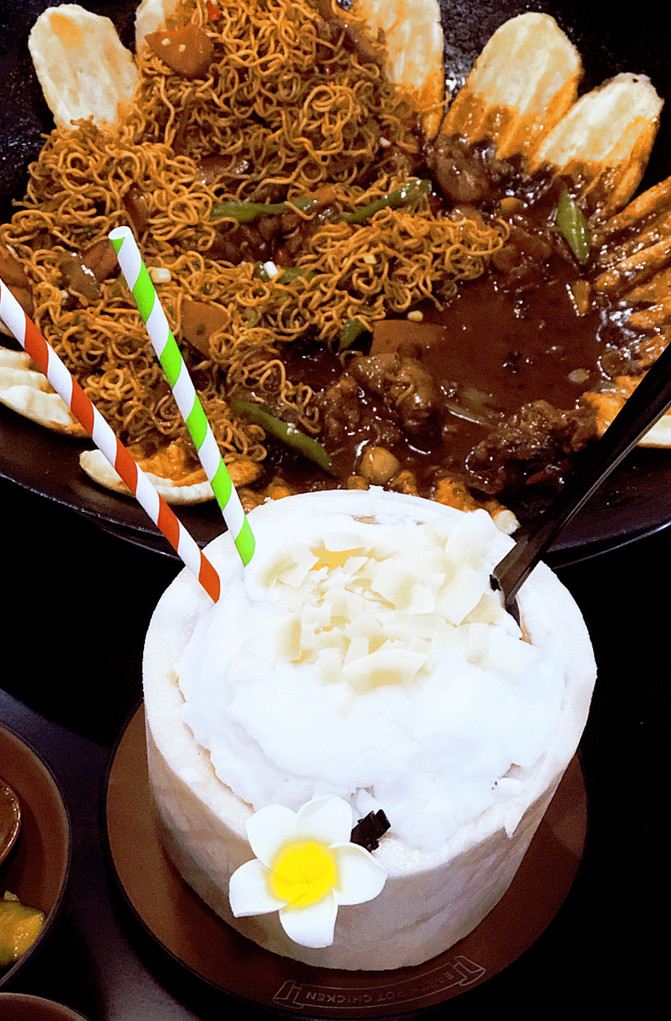 #椰子炒冰#端上桌感觉穿越到了沙滩,冰面的椰子脆片更是点睛之笔,入口真的是太解腻了,椰香浓郁大颗椰子肉吃得到的新鲜。