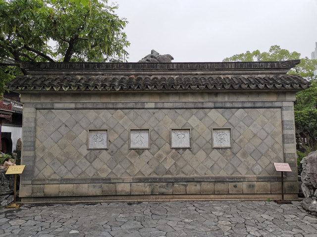 照壁。用于衬托其后的玉玲珑,四个篆字“寰中大快”,意为在园中游玩,身心可获得极大愉悦。