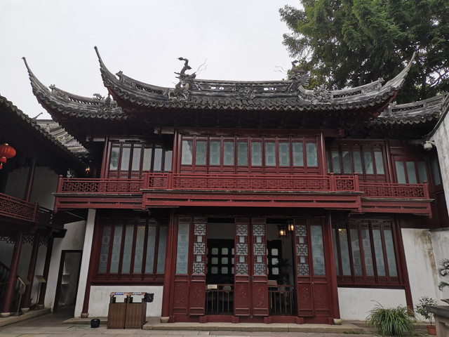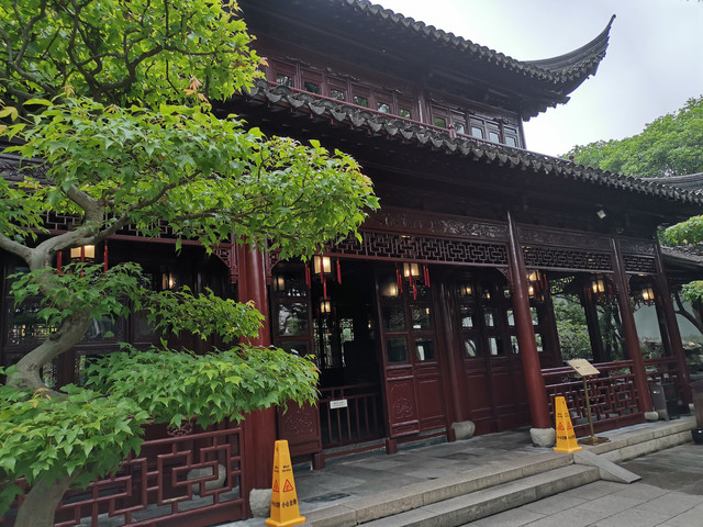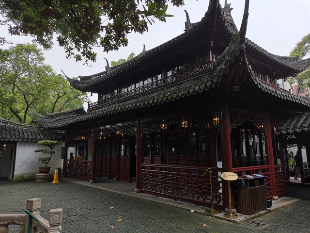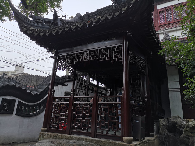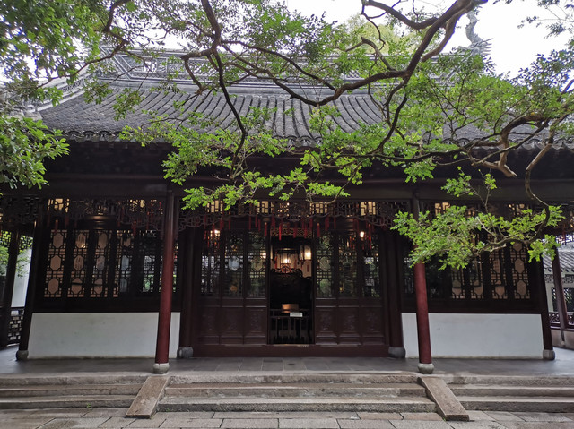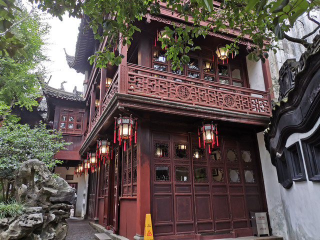 会景楼。位于豫园中心位置,三面环水,四周林木葱茏。据说此处登楼可观赏到全园景物,会景楼因此得名。