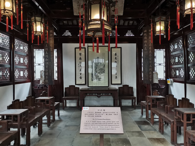 可以观。小型方厅,精致幽静。清新脱俗的名字,不免想起了拙政园的“与谁同坐轩”,也想起了苏东坡的明月和清风。