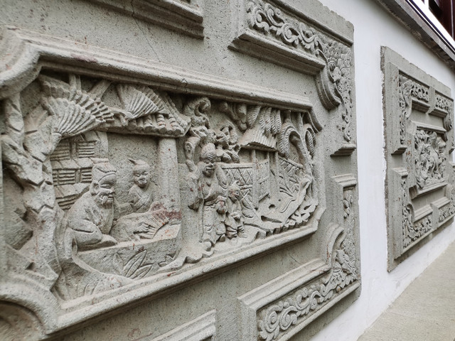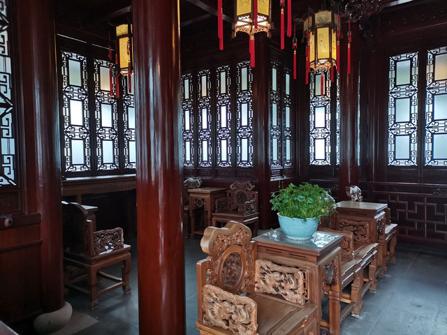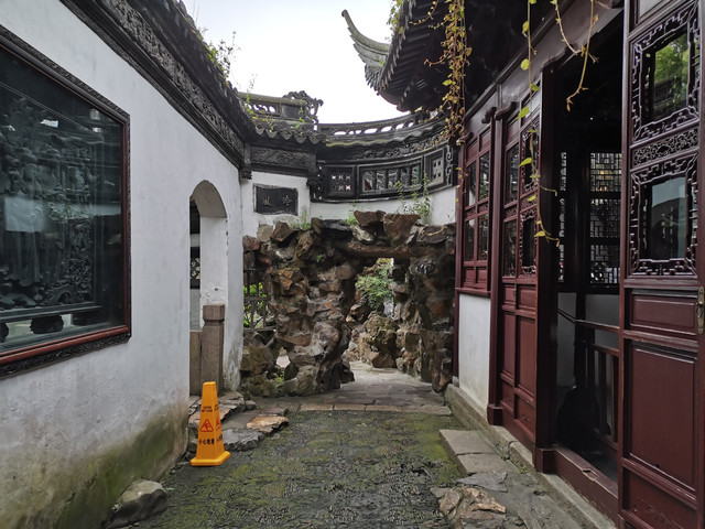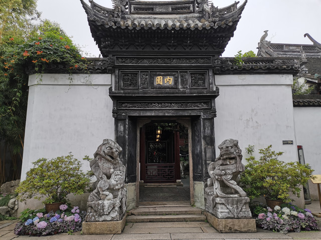 白墙,黑瓦,拱券,石花窗,满满的历史和岁月的斑驳痕迹。假山,石刻,木雕,长廊,处处都是炉火纯青的造园艺术。