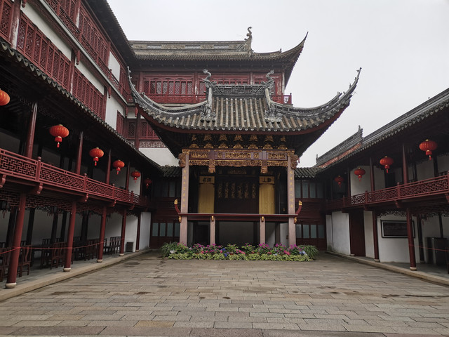 古戏台。建于清光绪十四年(1888),享有“江南园林第一台”的美誉。观众席两边有双层的看廊。
