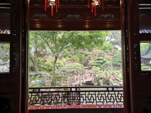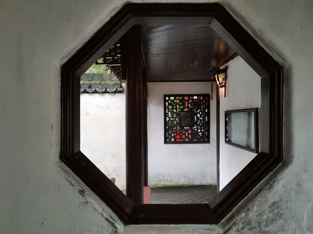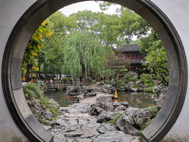 框景艺术是园林建筑中的常用构景方法之一,空框结合其背后的优美景物,隔框看景,产生奇妙的空间美感。框景在传统的东方园林中经常可见,豫园也不例外。