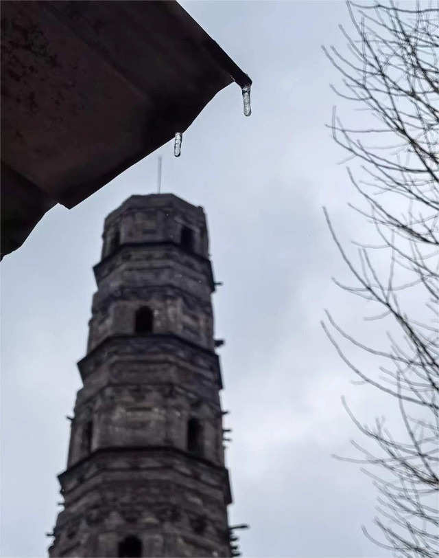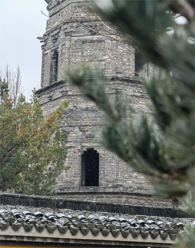 运气可真好!雪竟然越下越大,古塔巍巍耸立,砖瓦之间淡淡雪痕,更显沧桑。瞬间,就仿佛在清冷的空气中奔回了遥远的时光。