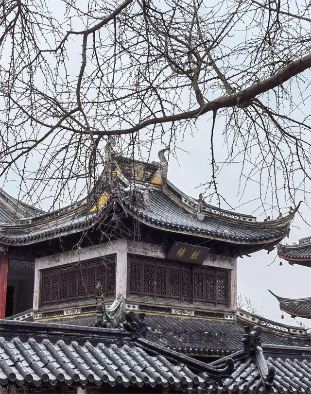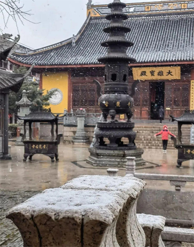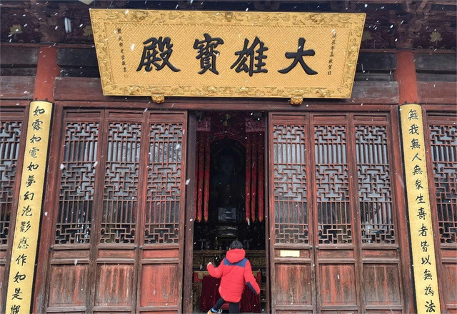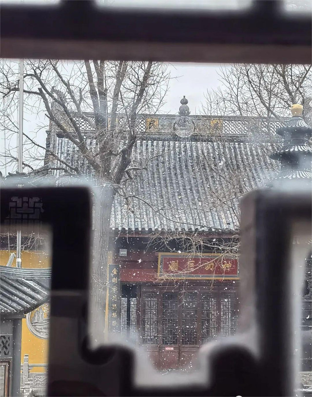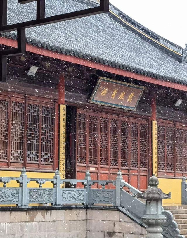 岁月不居,时节如流,几经毁坏的古寺在1993年得到重建。雪中倒像是有了千年前的风貌。