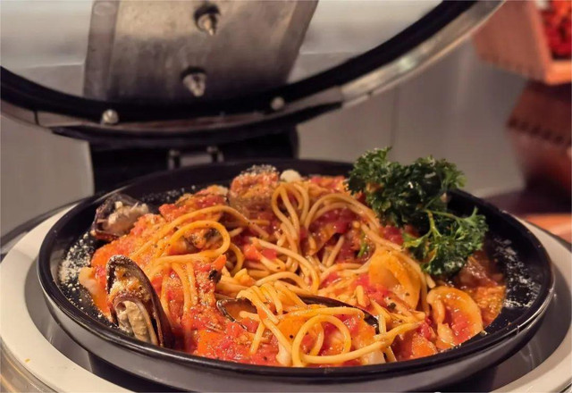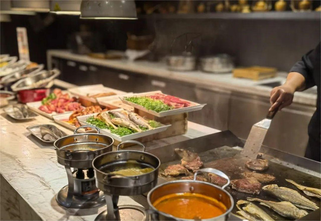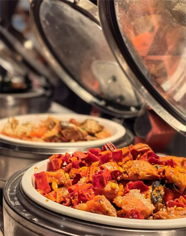 现烤的牛排、小黄鱼和各种肉肉,现包的烤鸭卷……都还蛮好吃的。