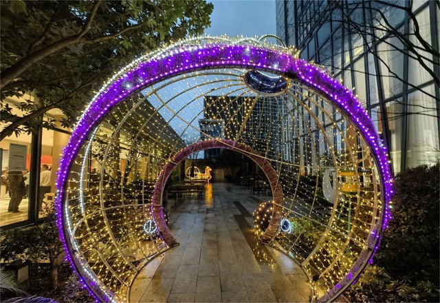 光明荟开放式美食街,各色美食应有尽有。夜幕降临灯光起,有着小黄浦江的美誉。