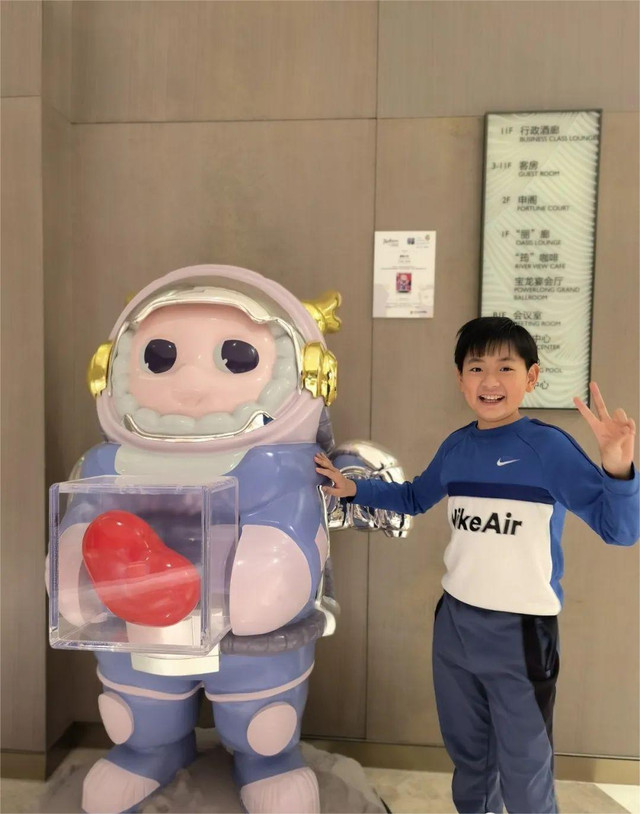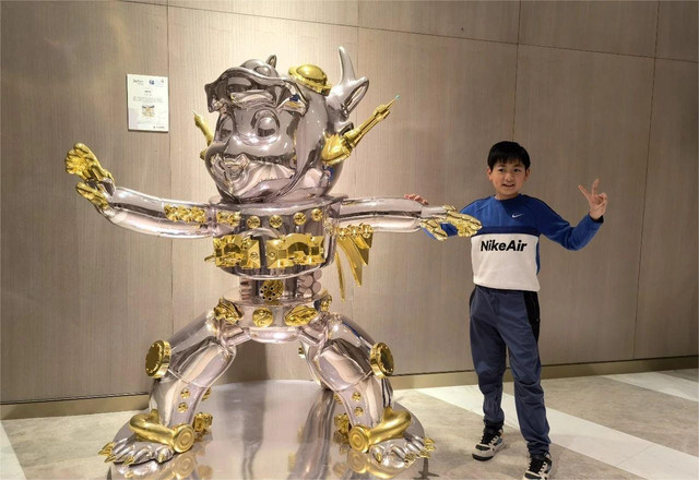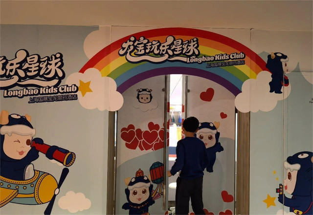 酒店还有一个亮眼的艺术展,分布在各处,很讨屁孩们欢喜。为什么呢?还记得儿童乐园的名字吗?“龙宝……”,对,艺术展就是以宝龙集团形象大使“龙宝”为主角的,很有又土又潮的Y2K美学风格,配色相当亮眼。
