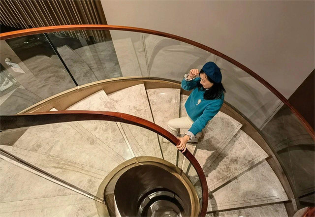 我则非常喜欢这道偏于一隅的旋转楼梯(感觉现在的酒店都得有个网红楼梯加持哈哈~),因为,不管从哪个角度拍它都非常好看。