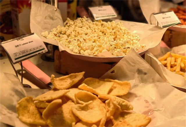 小屁孩喜欢的意面、甜品、冰淇淋、薯条、虾片,甚至爆米花都有!我叫他给我拿一碗爆米花,他起劲地拿来叫我“快吃”,因为我速度如果不快的话,就会被他吃掉了……