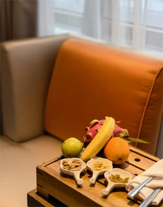 啊,我现在大半夜在写稿,一面写着一面觉得好饿啊。对了,水果里有龙眼和金桔,很甜,看来酒店还是挺下了点血本的。