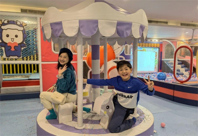 如果吃了一半娃不想吃了怎么办?餐厅一侧还有个儿童乐园,甩娃无忧!