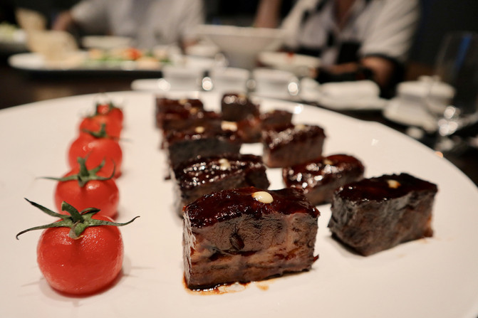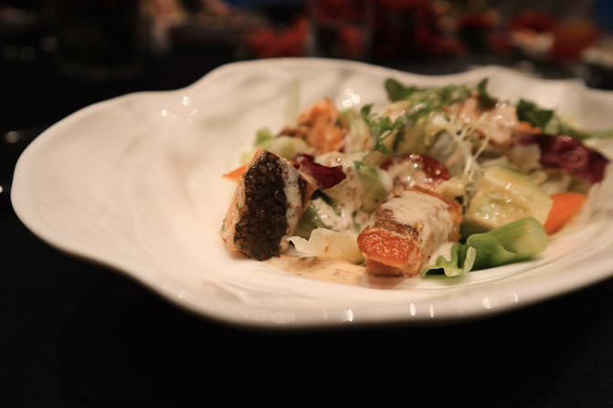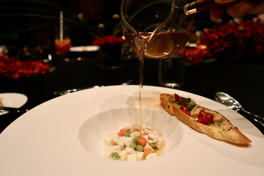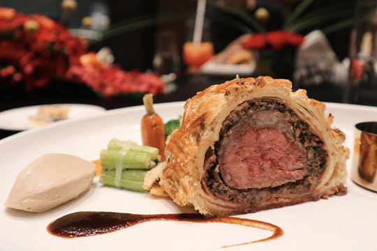 湾景22餐厅酒吧隔壁有一个三面通透的无柱多功能厅,可为企业客户定制会议、展览、招待会、鸡尾酒会或宴会等。夜幕降临后,集美的夜被华灯笼罩,华丽的⽔晶灯投下淡淡的光,使整个空间显得优雅⽽静谧。惠灵顿牛排是西餐中的厨艺菜,香润酥松的酥皮内裹粉嫩多汁的牛排,中间夹杂香气四溢的菌菇酱,配餐中的鹅肝也美味至极,整道菜口感丰富。