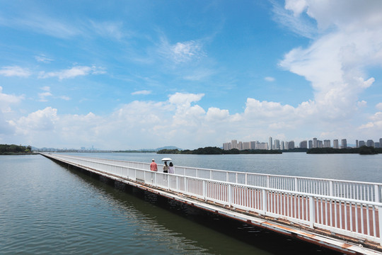 杏林湾水上自行车道属于杏林湾环湾绿道的组成部分,该段因全程位于水上且沿途可远眺园博苑、集美新城等美景而“走红”,被称作是“最美海上自行车道”,水体实际为杏林湾。乐活集美,云腾鹭飞,海上骑行悠然自得,在闽南式滨水休闲带看“嘉庚建筑风格”,是不容错过的集美落日观赏地。
