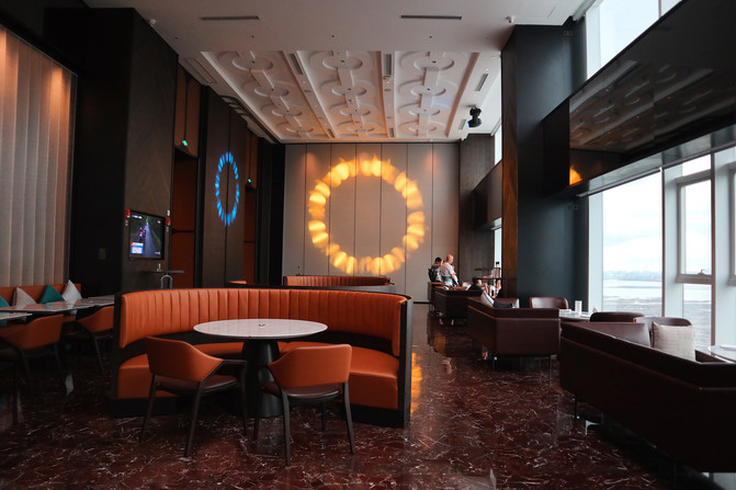 湾景22餐厅酒吧位于酒店顶层,乐享云端的惬意是商旅客人忙碌后的心灵慰藉,居高临下坐拥270°湾景视野,就连独自端着一杯热咖啡数云朵放空也显得很高级;看海水潮起潮落,各有各的美,周而复始,时光悄无声息在流逝,旅途中悠然自得的那份惬意让我们恋恋不舍。夜里灯光闪耀,鸡尾酒碰杯私语,是一天享用美食、品茗畅饮或观海赏湖的理想场所,也是一处迷人的时尚驿站和商务社交场所!
