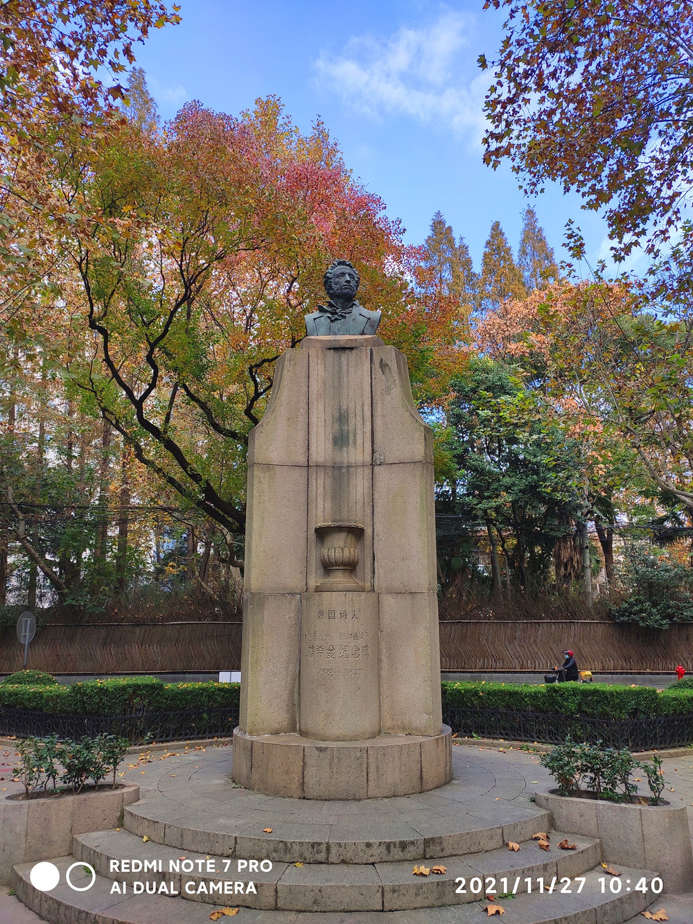 别看岳阳路低调,它背后蕴含的历史、文化背景却是十分丰富。东平路路口的三角花园内,有普希金雕像,就是一处上海的人文地标。1937年由上海俄侨为纪念俄国诗人普希金逝世100周年集资建造。雕像周围有四、五条林荫覆盖的小马路,而俄国诗人那张英俊的、轮廓分明的脸,忧郁而宁静地朝着的,就是岳阳路。同样,岳阳路内敛、低调的气质,也正好暗合“人文地标”四个字的深层含义。