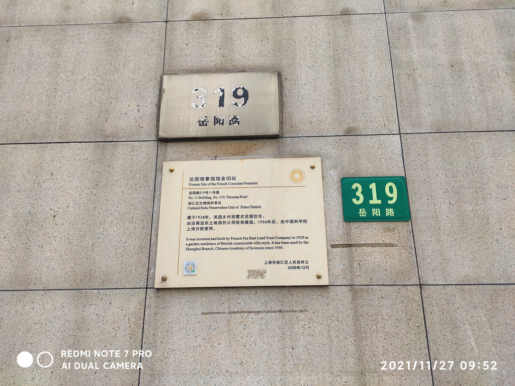 岳阳路320号,这个院落主体建筑,是岳阳路上最有特色的一栋房子带有哥特风格的建筑。始建于1929年,日本人从其握有的“庚子赔款”中,拿出一笔资金,在法租界购地,于1931年4月建成了一所“自然科学研究所”。经过十几年的苦心经营,这儿实验大楼、仪器设备、图书资料一应俱全。战后,这里被国立中央研究院接收。1949年以后,建制改为中国科学院生理生化研究所,成为发展新中国科学事业的重要一翼。