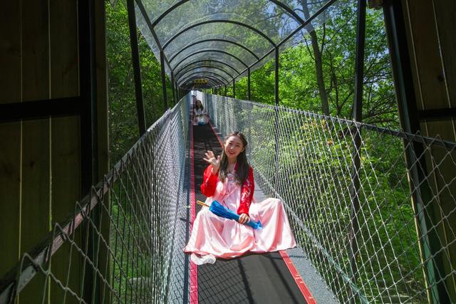景区里的玻璃桥和滑道,我们顺道玩了一下。