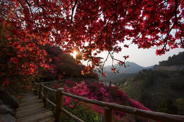 每年的3-5月份,木兰云雾山的万亩杜鹃会把青山染红,把峡谷染红,把天空也染红了,漫山遍野,红红火火,燃烧了山川,燃烧了每一个置身花海中的人。