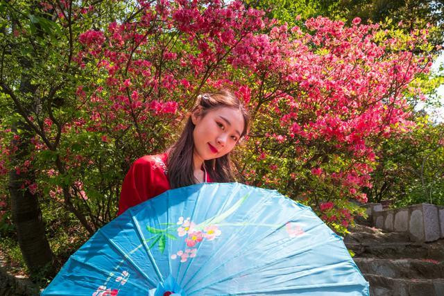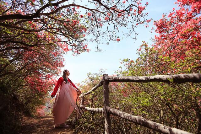 穿着美美的汉服,穿梭在杜鹃花海中,漫步于杜鹃花树下,感觉自己已经完全融入其中,俨然成为其中的一朵,傲然地自由绽放,无拘无束地为大地添彩。