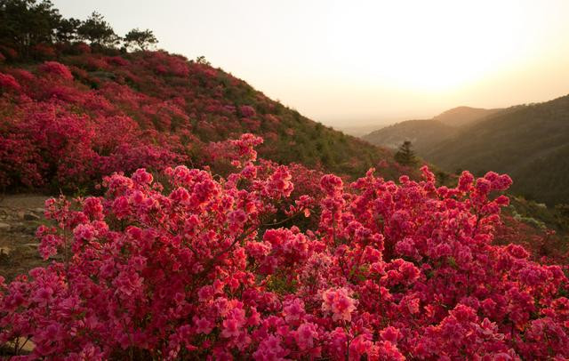 整片山峦,就像春天为她披上了玫红色的披风,又像天空不小心把红霞遗落在了山间,红得那么放肆,漫得那么震撼,美得令人窒息!