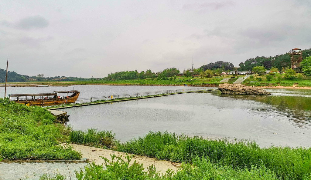 游览过河东,经过浮桥就到了河西。河西是军事体验区域,这里有很多体验项目。