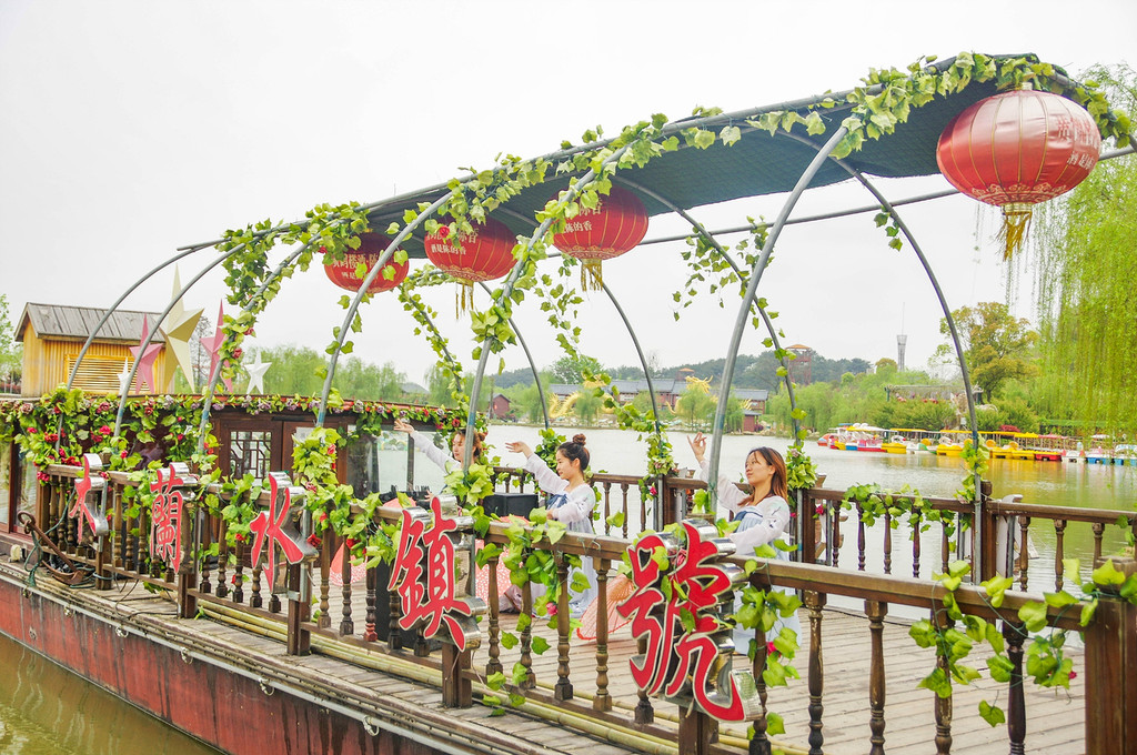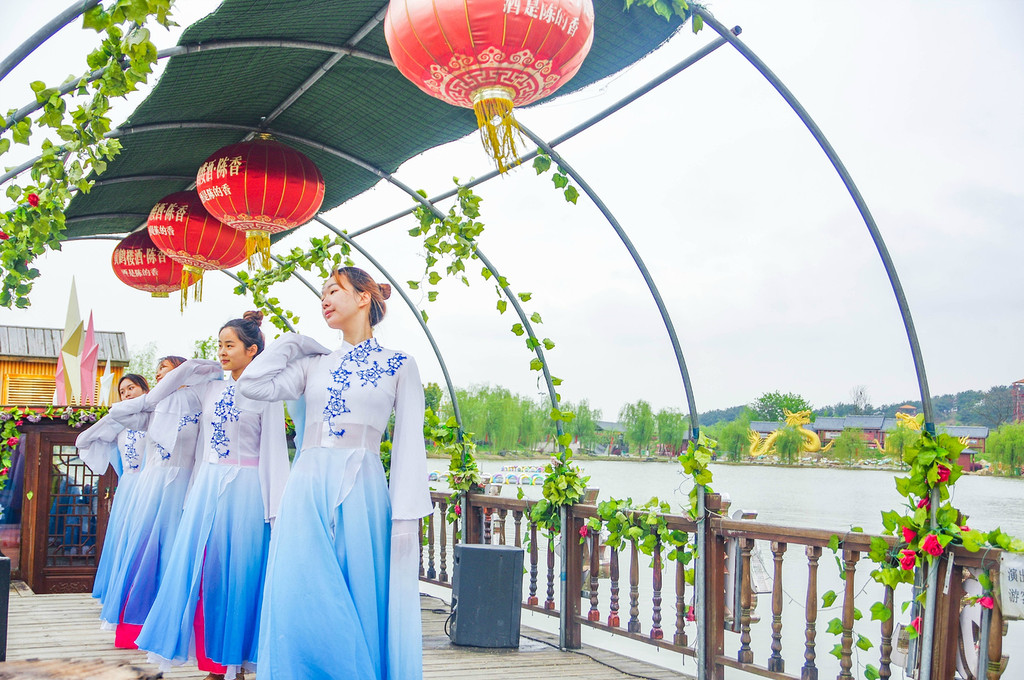 随后,就看到一艘由游船改造而成的表演场地,几位年轻的姑娘在游船里翩翩起舞,节目特别丰富,种类纷呈,精彩连连。