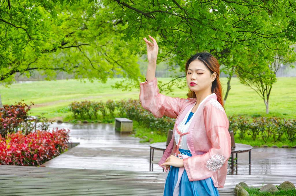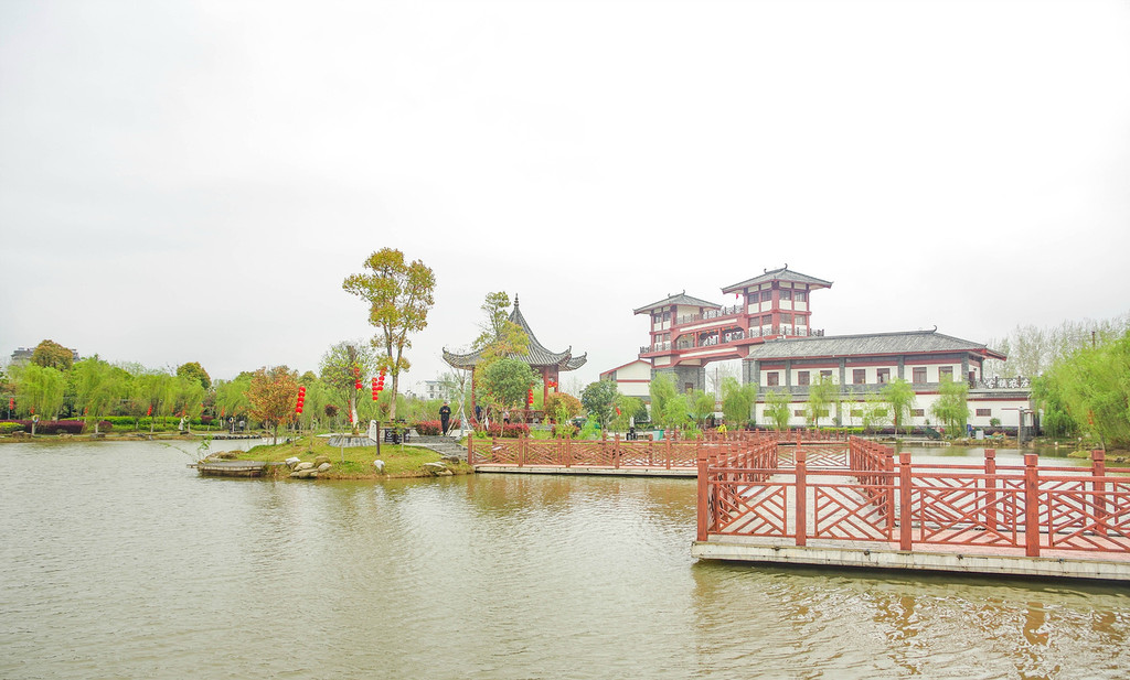 小桥流水人家,木栈道亭台楼阁显得很精致,再加上杨柳依依,一派江南水乡的风情在这里展示的淋漓尽致。