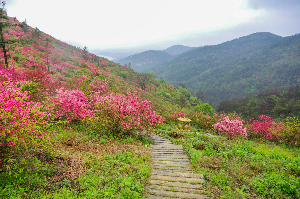 不过,春天里云雾山最美的还是漫山遍野的杜鹃花海。据说每逢春夏之交,云雾山杜鹃花红白相间,漫山遍野竞相开放,可以说是武汉,乃至整个湖北的一绝。