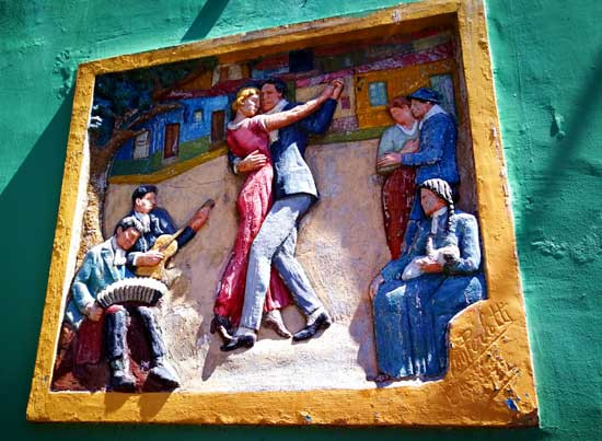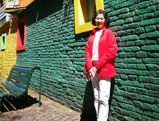 如今的博卡区已号称是艺术百分之百的聚集之地。穷困的艺术家们在贝尼托的带领下把生锈的铁皮房子漆成撒哈拉般的金黄色、土耳其式的蓝色、马德里式的红色,以及威尼斯画派忧郁的紫色。虽然表面缤纷的色彩并不能真正掩饰灰色的苦日子,但天性乐观的阿根廷有这几抹悦目色彩便足以自寻开心了。