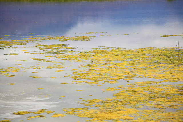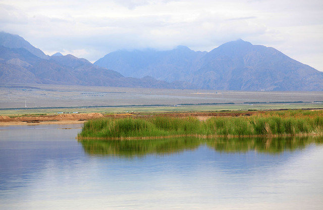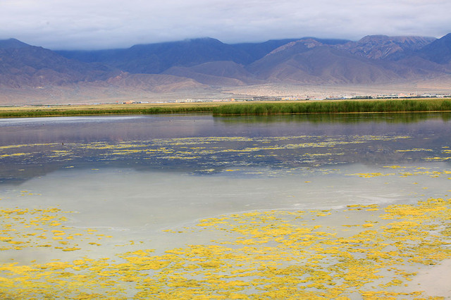 翡翠湖虽然是盐湖,但湖中水草茂密,黄花漂浮。虽然没有蓝天白云,但景致还是不错的。