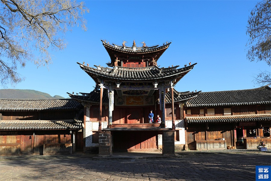 沙溪寺登街位于沙溪坝子中部,坐落在黑潓江西岸鳌峰山北端“鳌头”所在的缓坡之上,是沙溪的一块风水宝地。明代以来随着沙溪茶马古道商贸经济的繁荣,使寺登街形成了以兴教寺、魁阁带戏台为中心的四方街交易区,周边以前铺后店建筑为主的商贸古集镇。