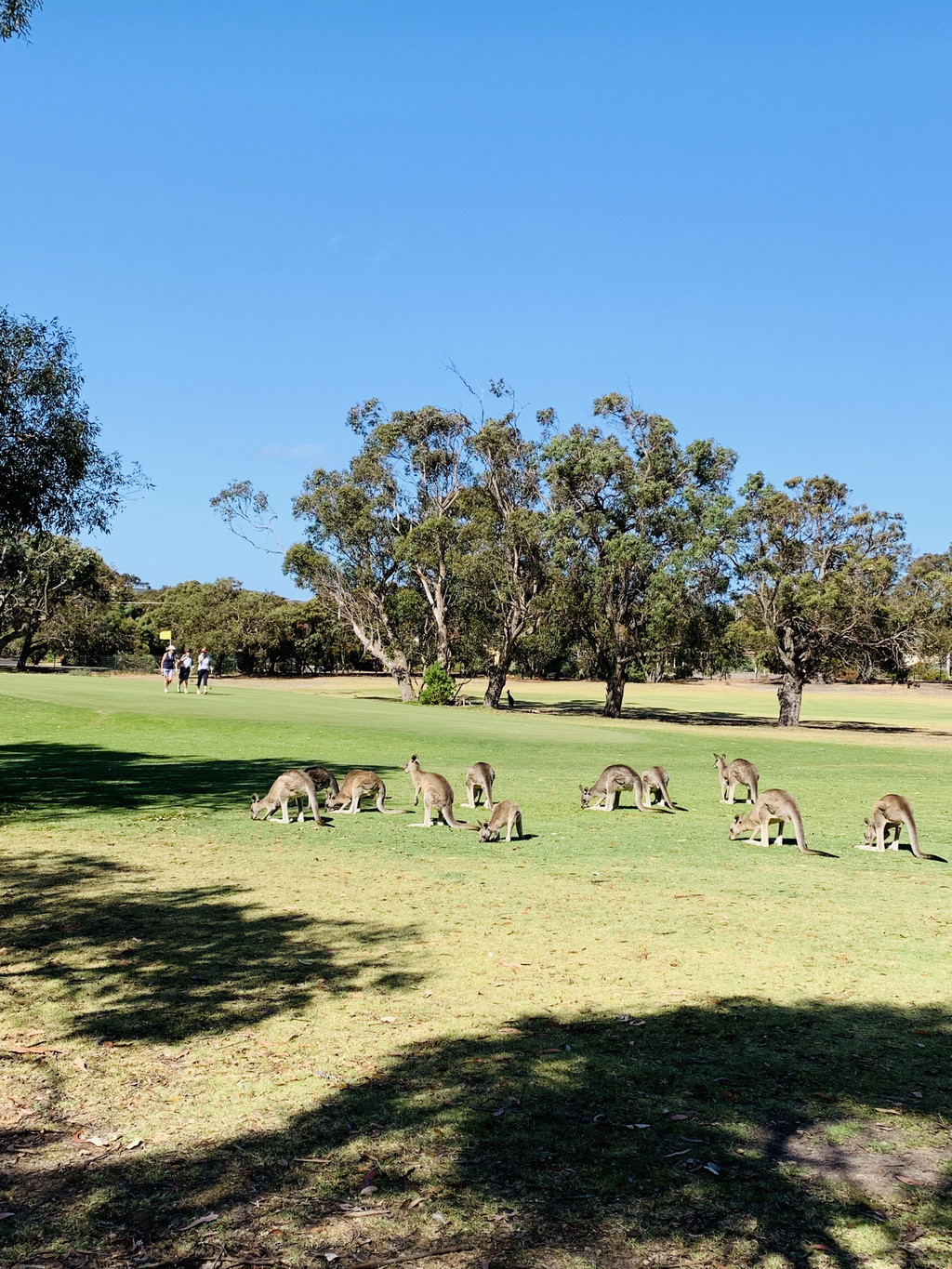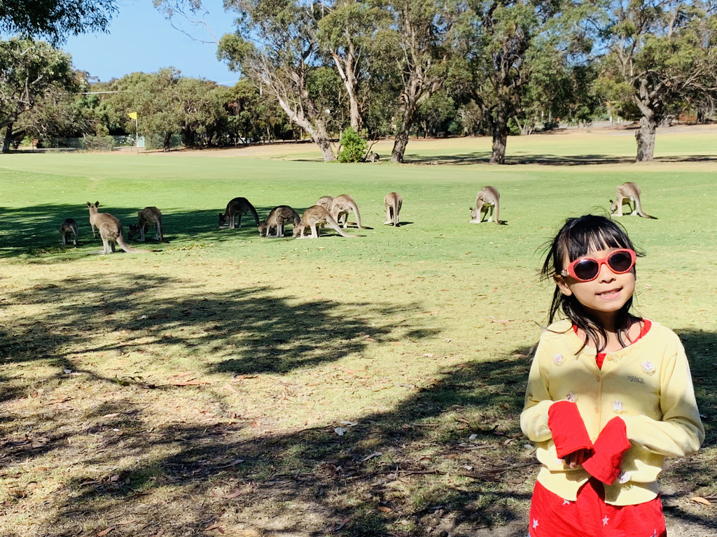 贝尔斯海滩简单打卡,为了满足荳妞的看袋鼠心愿,我们驱车 到Anglesea高尔夫球场,有一群袋鼠常年生活在这里,听高尔夫球场工作人员介绍 ,袋鼠通常是家族式生活,对外来成员极为排斥。如果你喜欢golf,不妨在这里挥上几杆,让这群见惯了golf高手的袋鼠,欣赏一下你的的英姿。