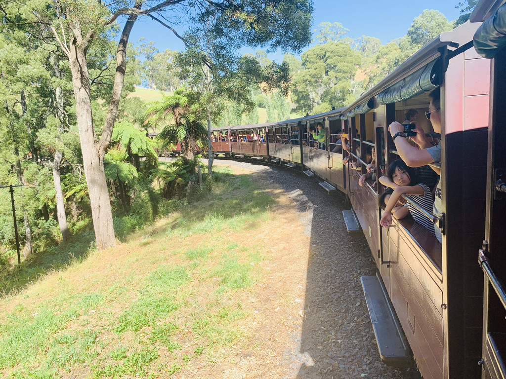 第二天一早,房东开车带我们来到贝尔格雷夫(Belgrave),帮我们办理好所有乘车手续,并告诉我们坐在行车方向右手边,这样风景会好很多。随着一声呜呜汽笛响起,小火车之行开始了。一路上,车上欢声笑语,窗外是一排排高大的桉树,远处湖光粼粼,窗内弥漫着丹顿农山清新的空气。火车经过的地方,路边行人都会为你鼓掌尖叫。
