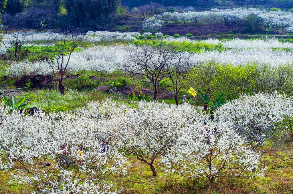 沿河土家族自治县沙子街道、中界、晓景等11个乡(镇、街道)种植的9.28万亩李花竞相绽放,充满浓浓的早春气息。
