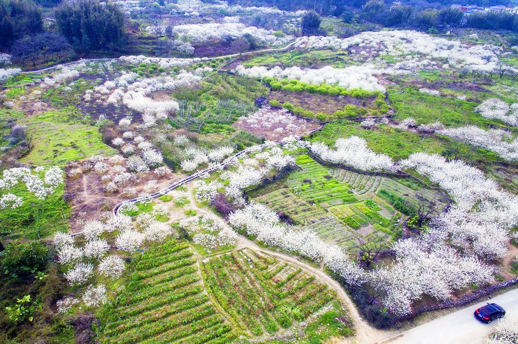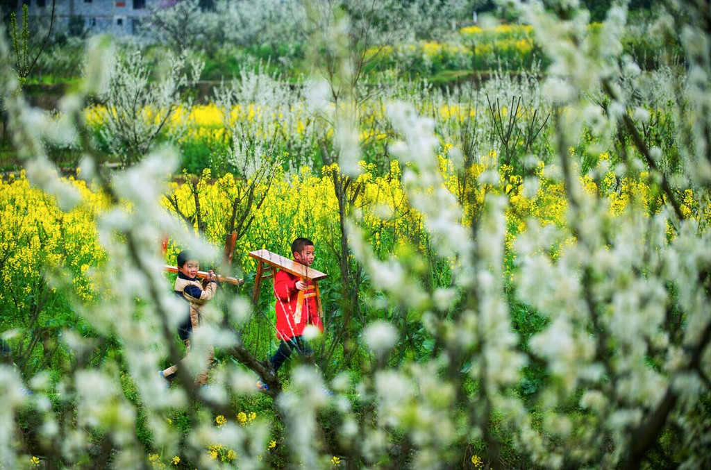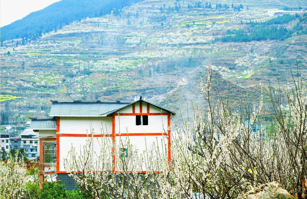 旅游步道、观光平台、停车场、文化长廊、休闲亭等旅游基础设施,春暖花开时节,山上山下、树上树下,李花、油菜花绽放,连片的“金海雪山”吸引省内外游客慕名而至。