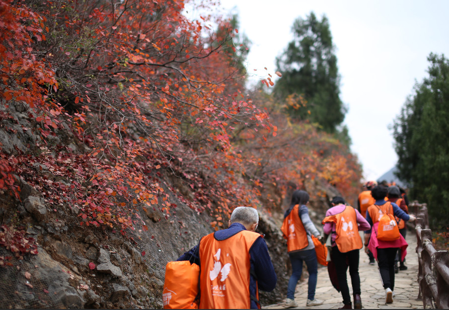 游览白帝城后乘渡船过江,开始徒步旅程。