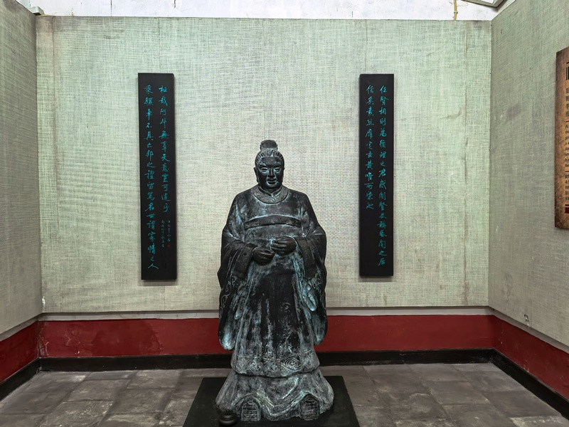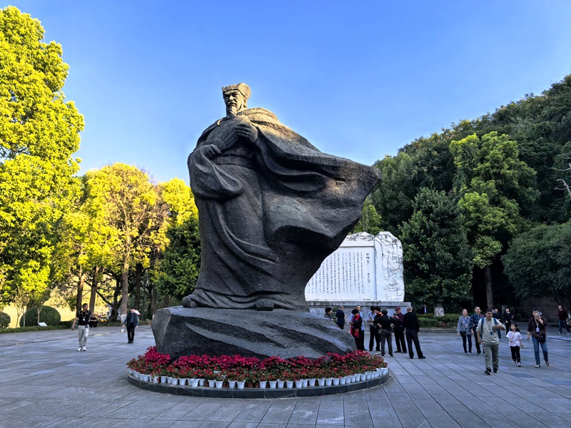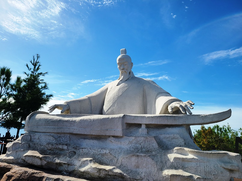 舜帝祭典四望的地方—四望乐坛的“乐正后夔”牌坊和汉白玉音祖塑像—浮雕后夔。