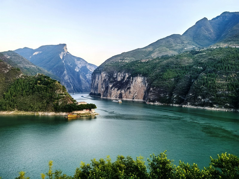 下图是从白帝城观景台看到的瞿塘峡和夔门。