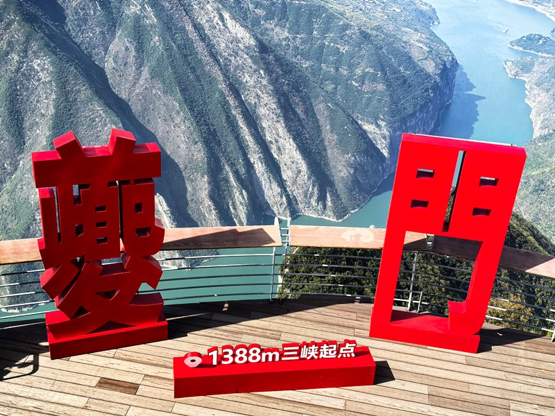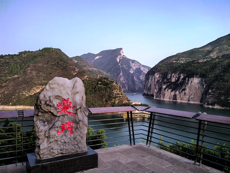 在三峡之巅观景区的核心景点观景平台—迎龙台俯瞰,整个瞿塘峡的壮观景色尽收眼底。