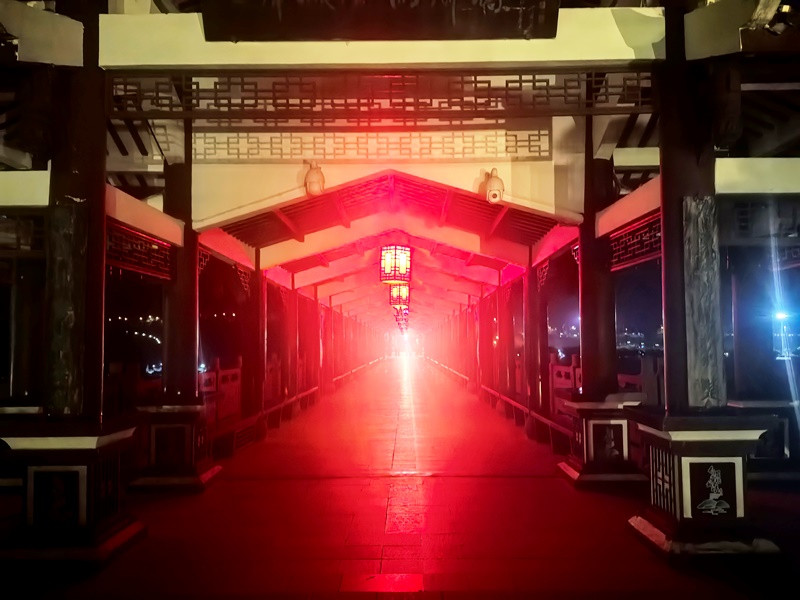 白帝城原位于长江北岸,三峡工程蓄水后,水位抬高至175米,白帝城成为“高峡平湖”中四面环水的一座“绿岛”,通过一座长长的风雨桥与长江北岸相连。