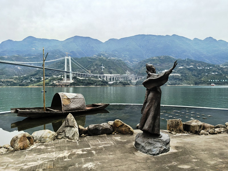 夔州博物馆位于高台上,高台下面江边的南门沱是诗仙李白在流放途中遇赦返回江陵时登舟的码头。