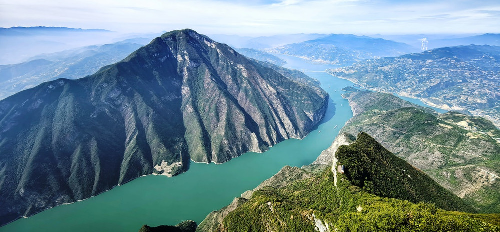 从瞿塘峡景区遥望长江三峡物理形态的最高处—三峡之颠。